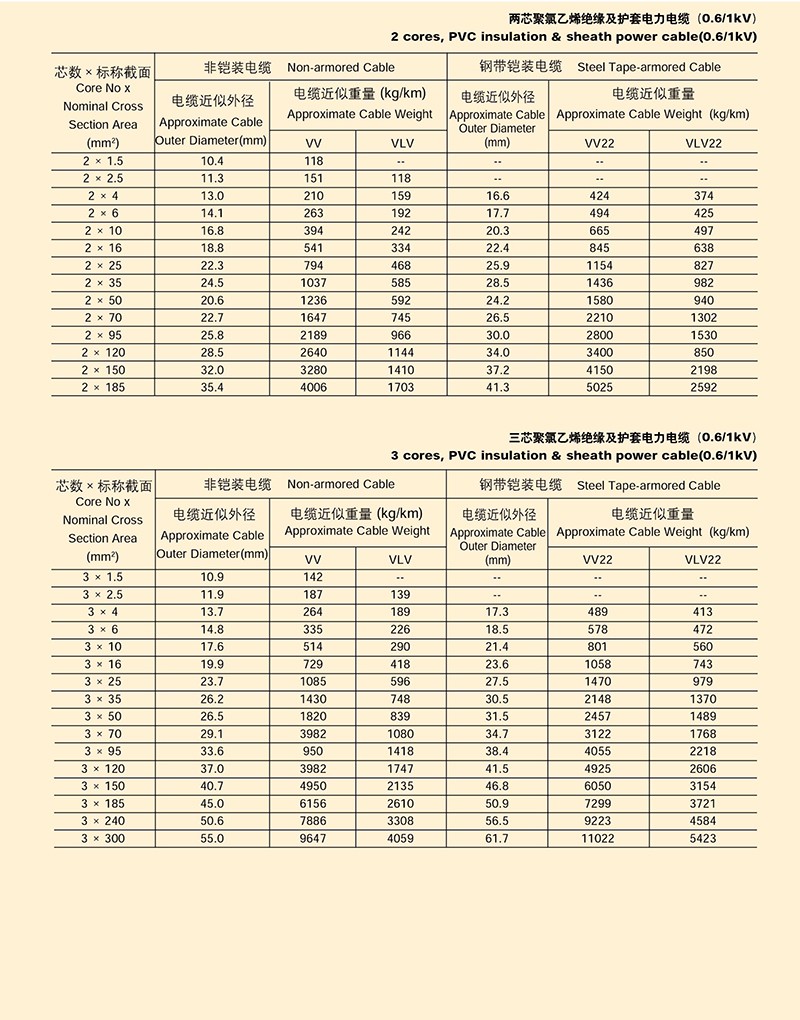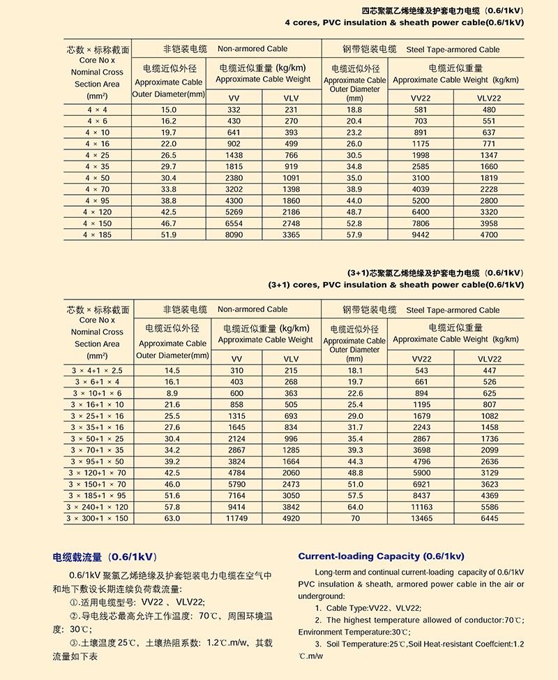 0.6/1KV聚氯乙烯絕緣護套電力電纜