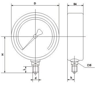儀表由測(cè)量系統(tǒng)(包括接頭膜盒等)、傳動(dòng)機(jī)構(gòu)、指示裝置和外殼組成。